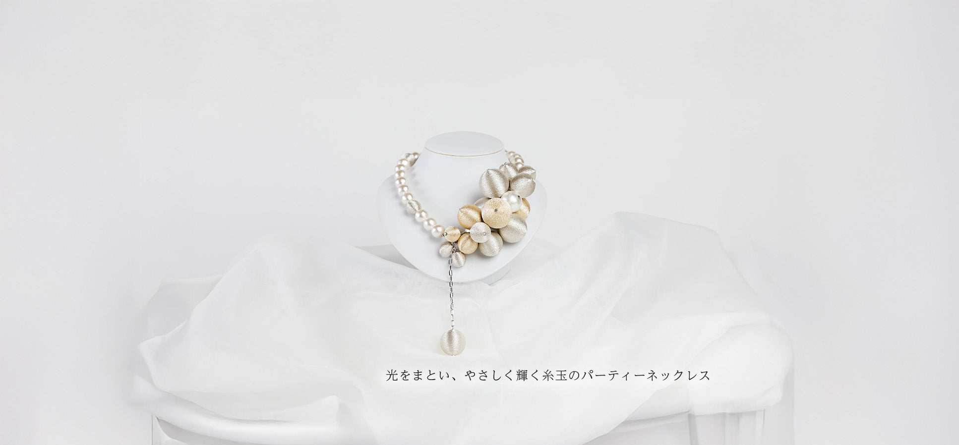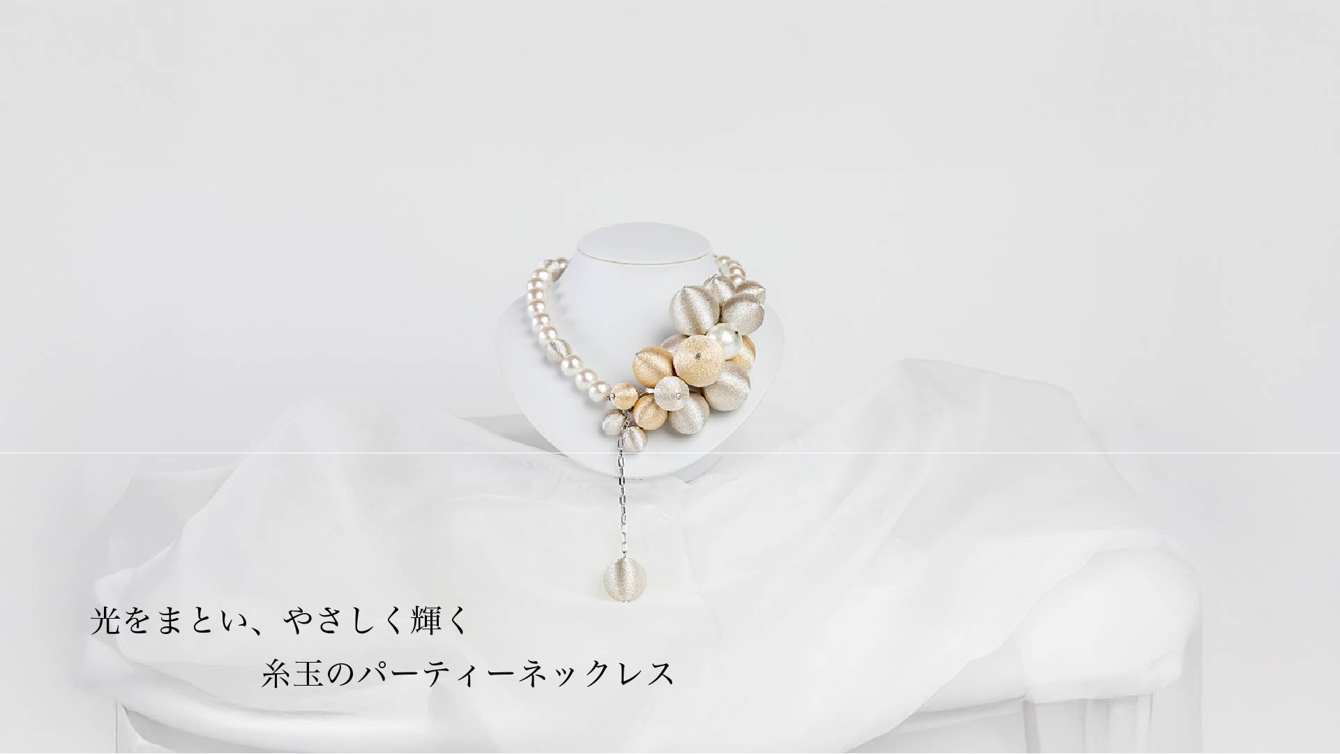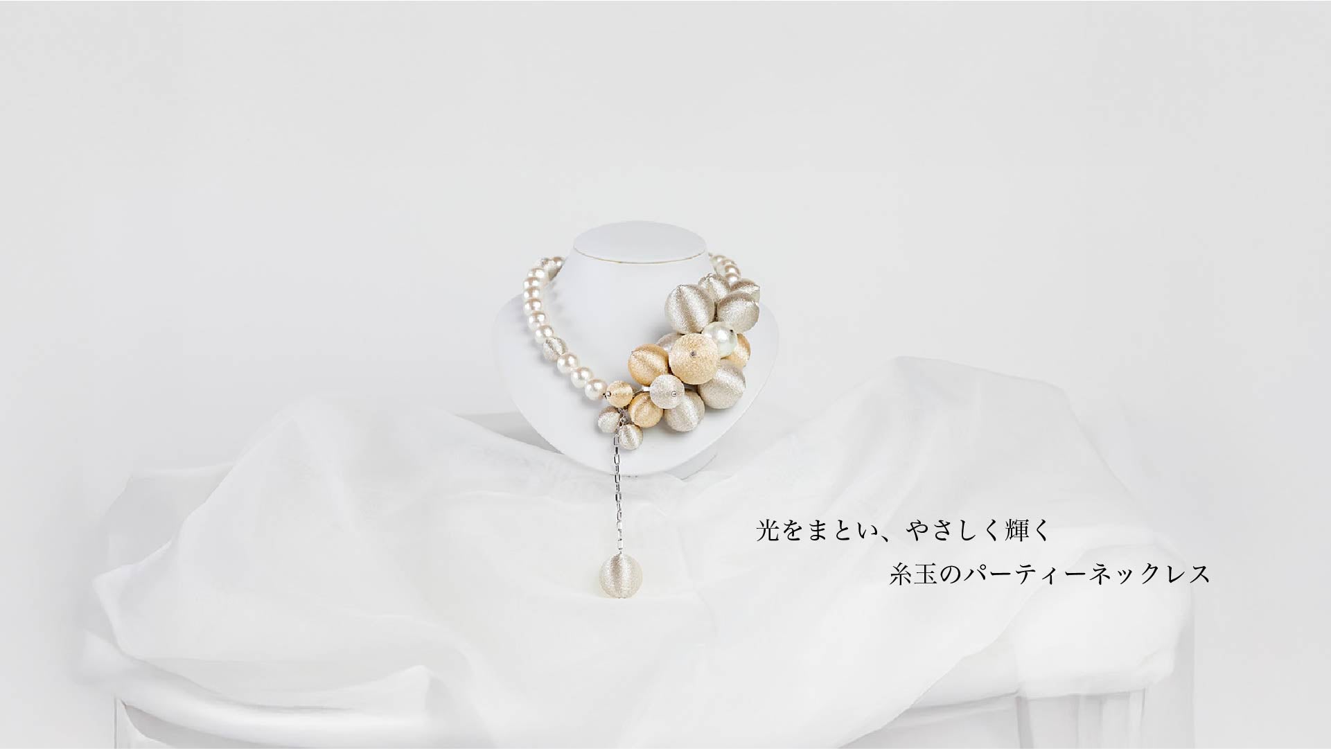 光をまとい、やさしく輝く糸玉のパーティーネックレス