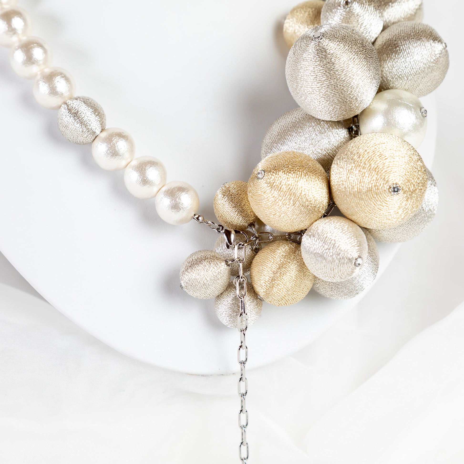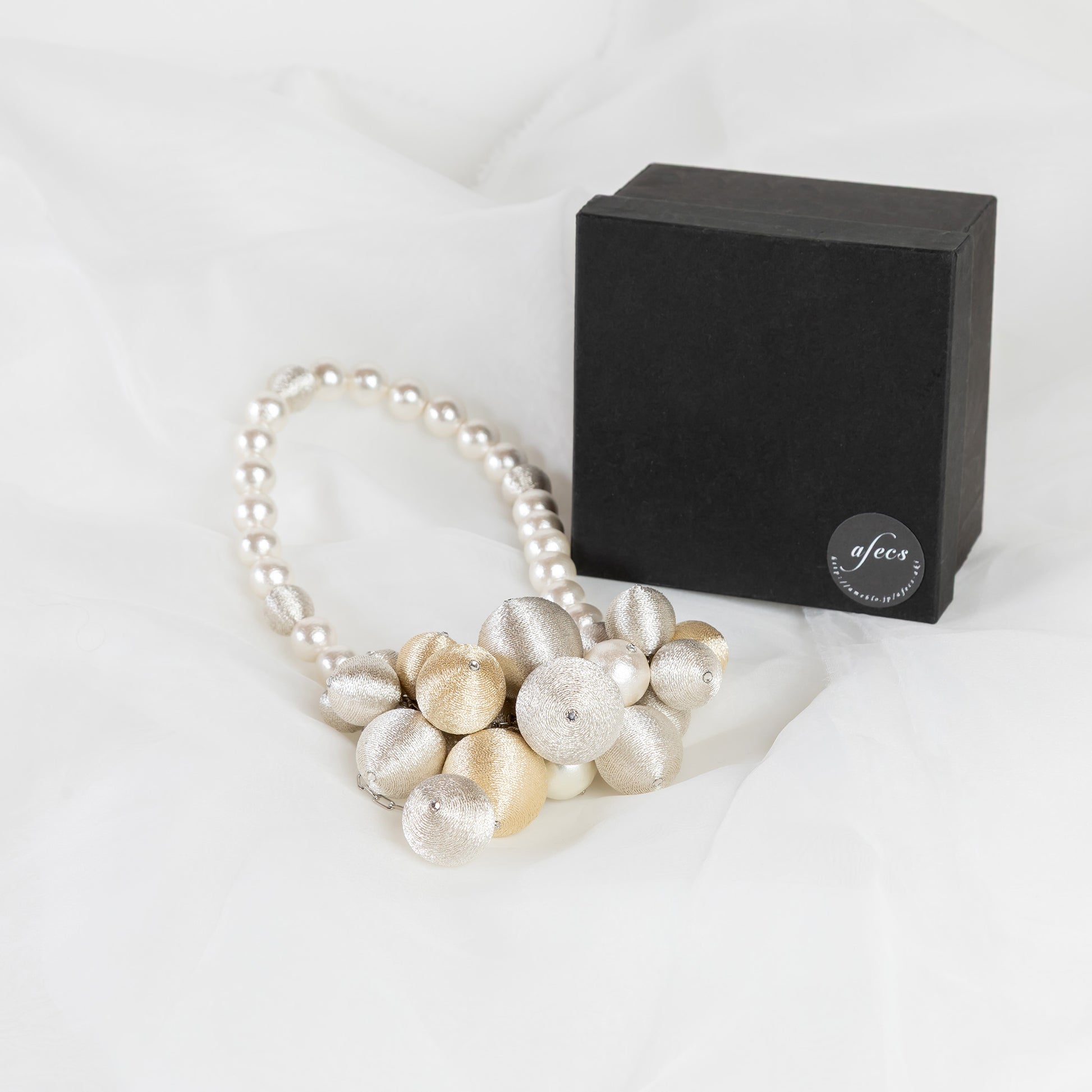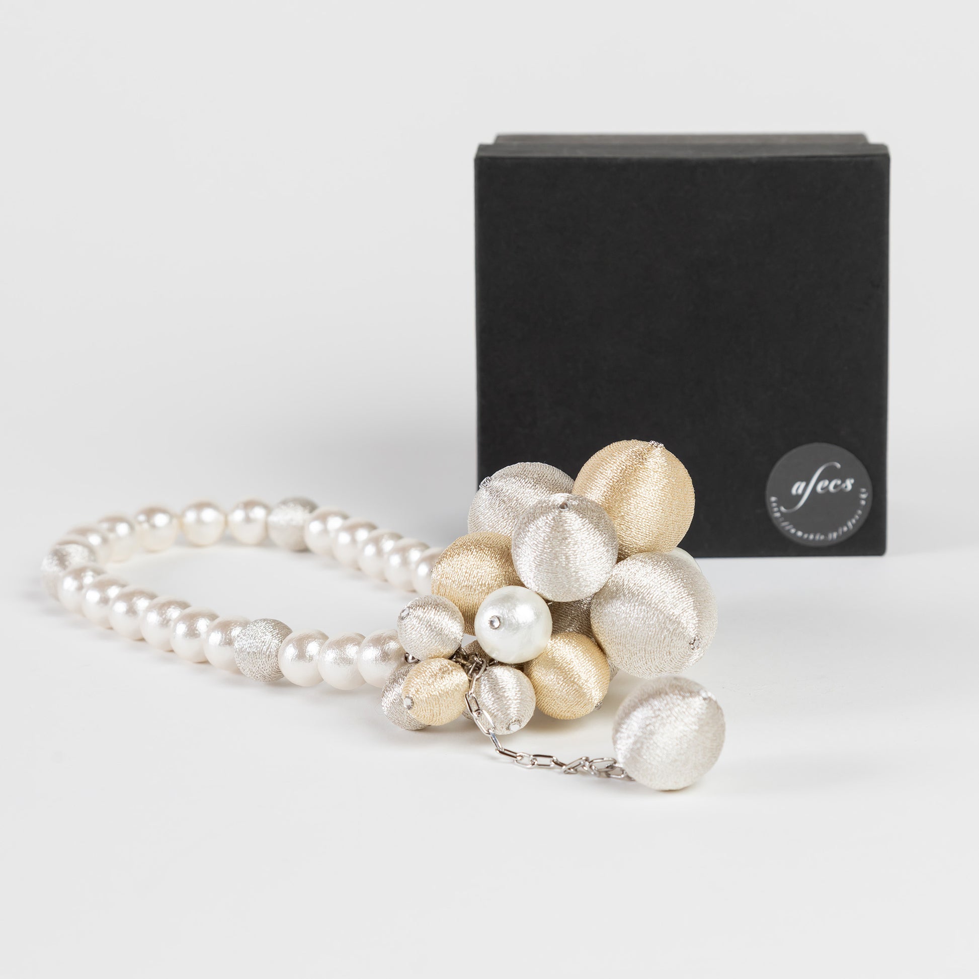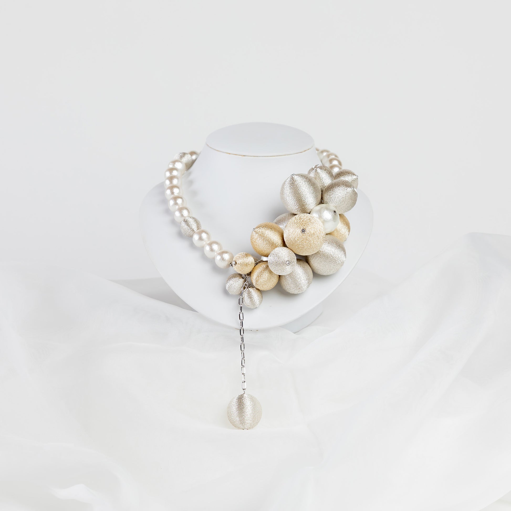 大小のパールとシルバー・ゴールドの輝きがかさなり、気品あふれる表情を見せます。